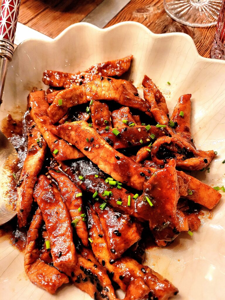 Tender Sweet and Spicey Pork Tenderloin with Black Sesame.