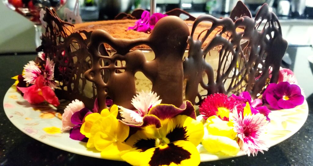 Layers of creamy marscapone, hint of espresso. A dark chocolate tiramisu crown birthday cake.