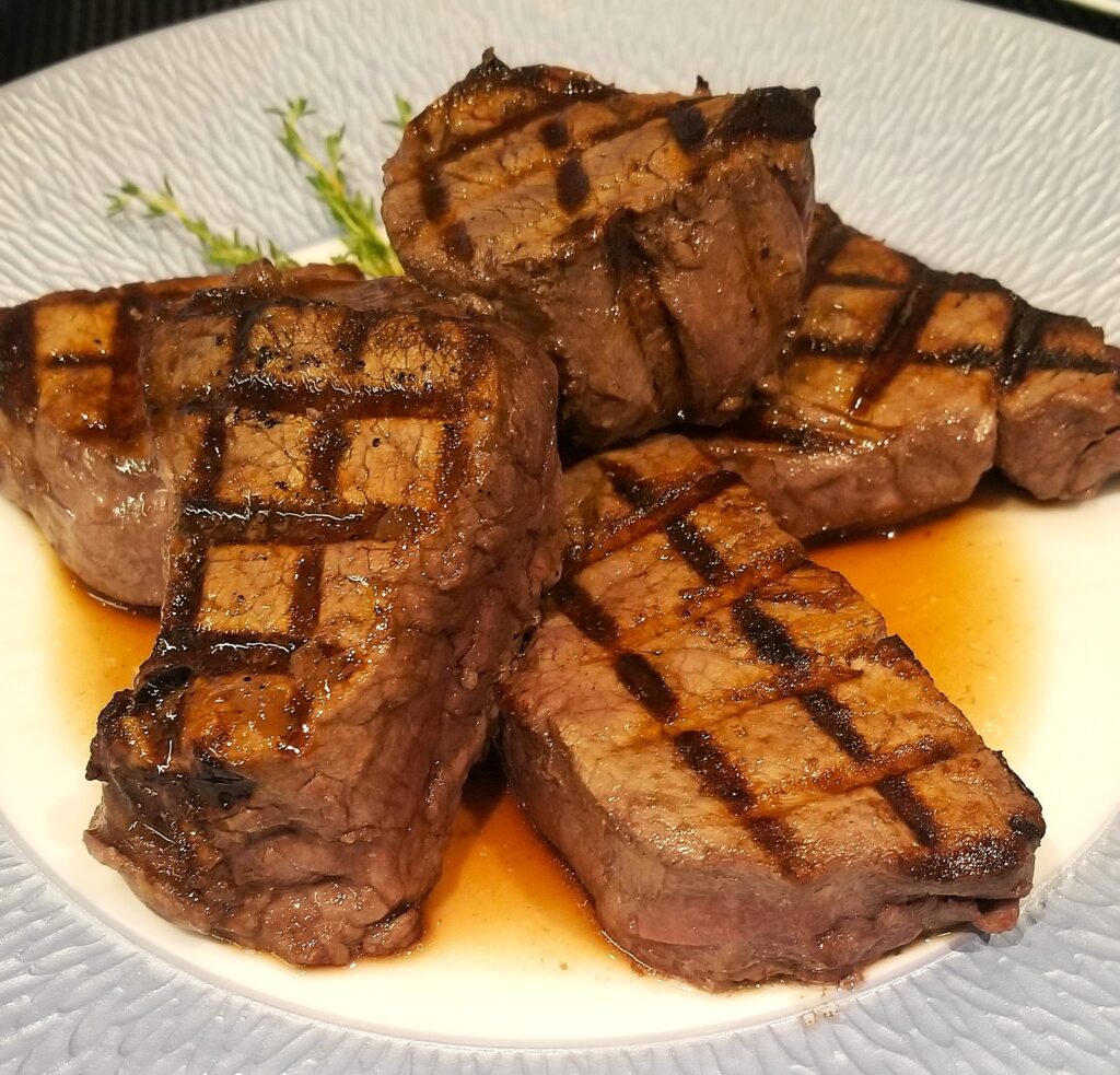 Filet Mignon of Beef Cooked Rare. Paired with a bottle of Ormes de Pez.