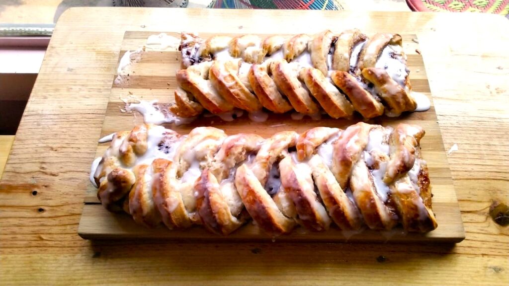 Out of the Oven Hot Apple Berry Danish Iced with Vanilla Lemon Sugar.